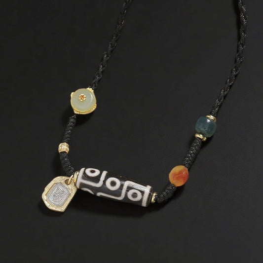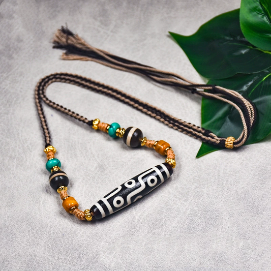 Tibetan Dzi Bead Necklace with 9-Eye Pattern – Ethnic Protection Amulet