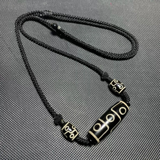 Tibetan Agate Three-Eye Dzi Bead Necklace – Vintage Ethnic Charm with Spiritual Significance