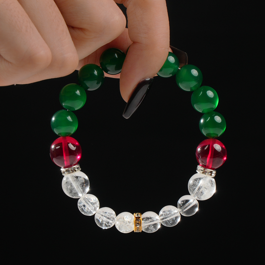 Clear Quartz, Green Agate & Garnet Bracelet – Clarity & Vitality