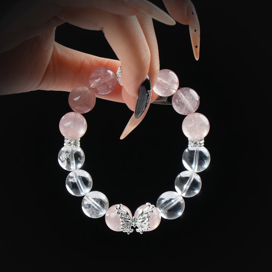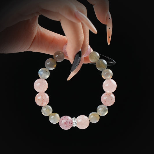 Strawberry Quartz & Gray Moonstone Bracelet – Emotional Balance & Intuition