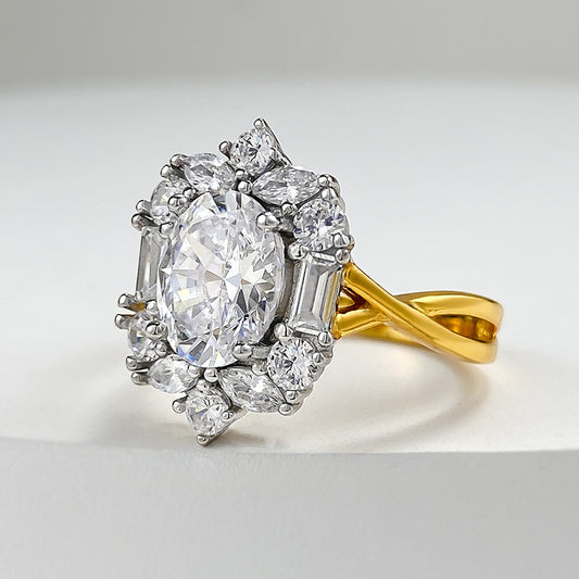 S925 Vintage Style Moissanite Ring – Gold Band with Radiant Cluster Setting