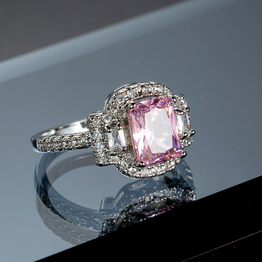 S925 Square Pink Moissanite Ring – Ultra Sparkle Pavé Design