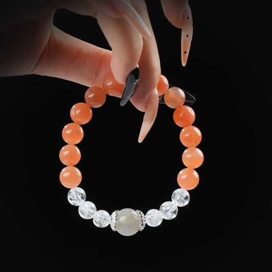 Gray Moonstone, Orange Moonstone & Clear Quartz Bracelet – Balance, Clarity & Feminine Energy