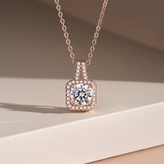 S925 Square Moissanite Pendant Necklace – Minimalist Elegant Design