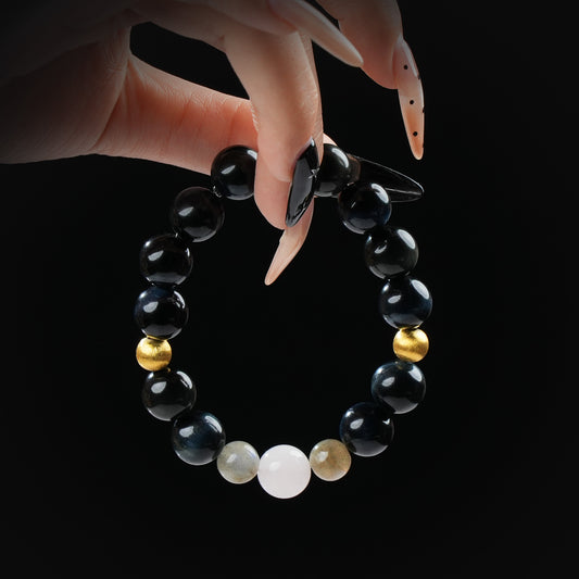 Blue Tiger’s Eye, Gray Moonstone & Clear Quartz Bracelet – Intuition, Grounding & Clarity