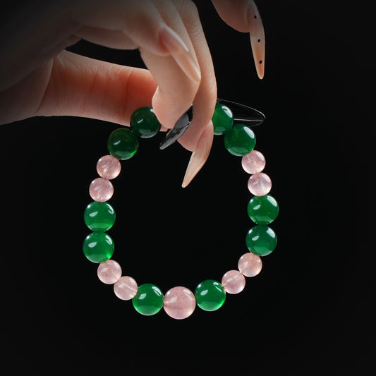 Green Agate & Strawberry Quartz Bracelet – Love, Vitality & Emotional Harmony