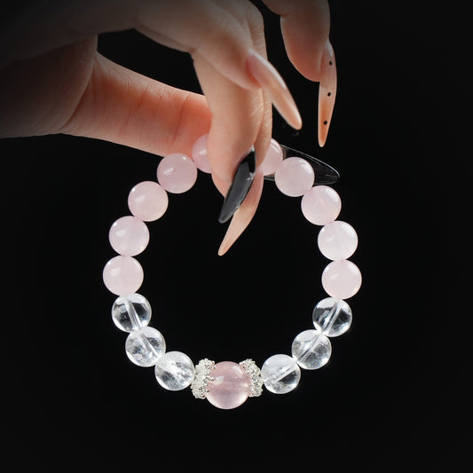 Strawberry Quartz, Rose Quartz & Clear Quartz Bracelet – Love, Clarity & Emotional Healing