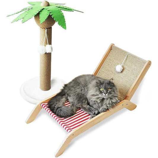 Beach Chair Cat Hammock, Elevated Cat Beds for Indoor Cats, Original Cozy Lounger with Sisal Scratcher and Toy Ball Heavy Duty Magnetic Garage Screen Door cat house cat hammock