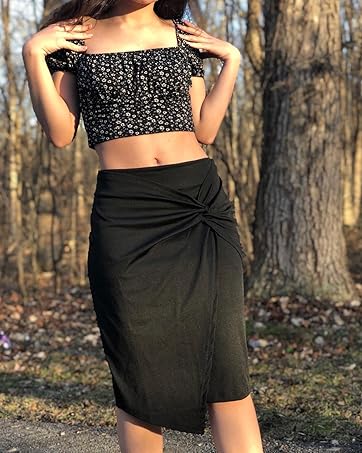 Kate Kasin Wear to Work Pencil Skirts for Women Elastic High Waist Wrap Front Knee Length Bodycon Skirt Tummy Control
