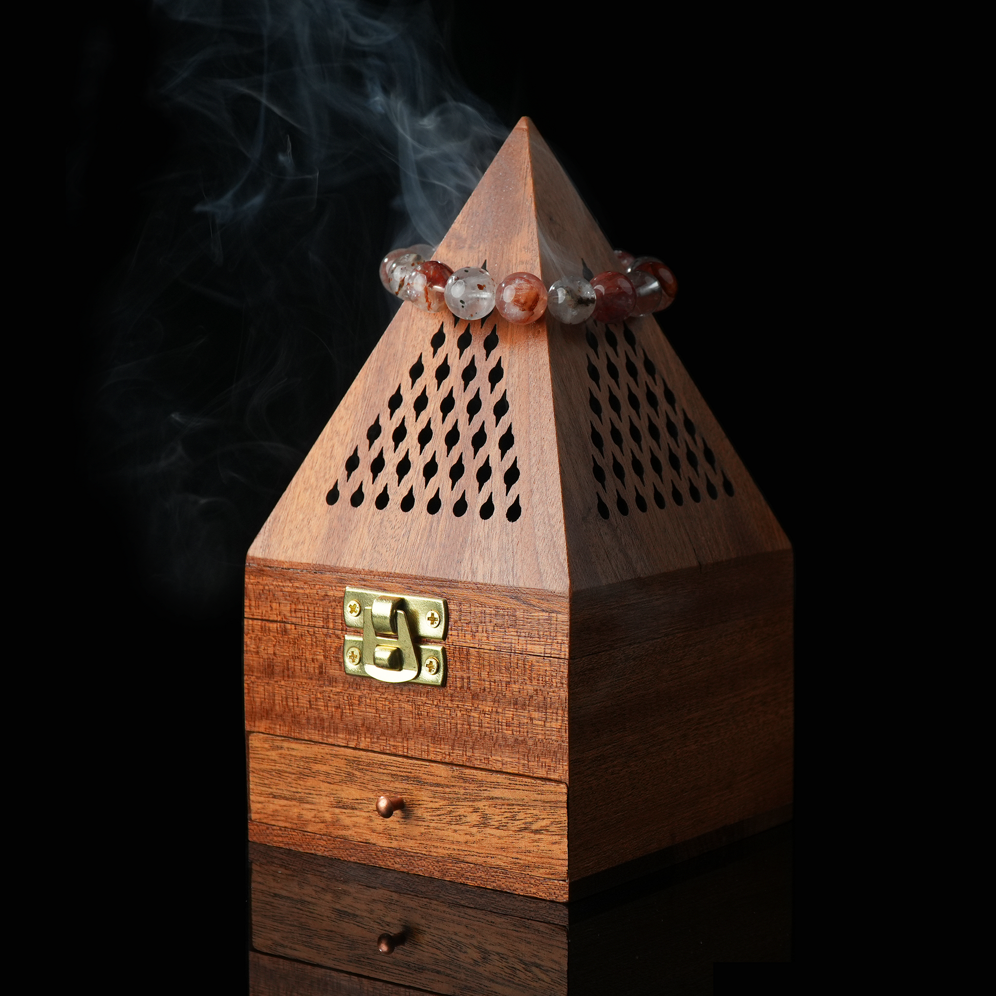 Pinewood Pyramid Incense Burner – Crystal Cleansing Smudge Tray
